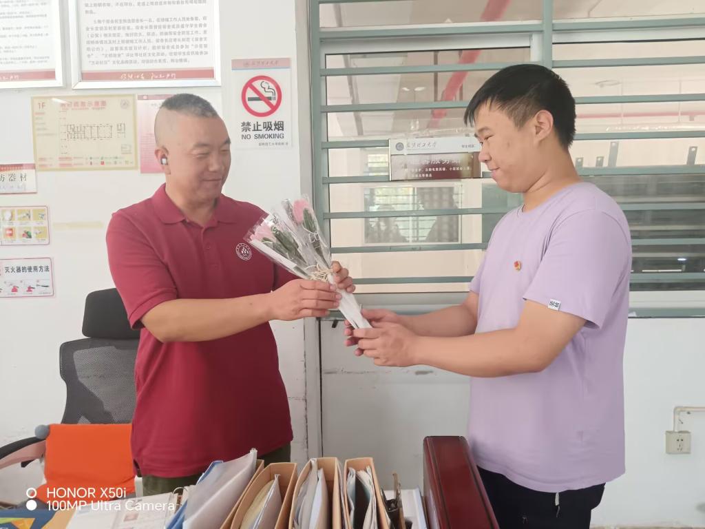 本次活动通过党员亲手制作扭扭花束,以匠心巧思传递对老师的敬意与祝福。原本普通的材料在同学们的巧手之下,焕然一新,化作色彩斑斓的“花朵”。花束制作完成后,由学生党员、入党积极分子以及社管委共同组成的“敬师小队”携带亲手制作的“永生花”和节日贺卡,将心意送至一线社区工作人员和学院辅导员手中。收到这份特别礼物的社区一线工作人员纷纷表示,第一次收到手工花束,内心满是感动与惊喜,感受到了同学们的心意。