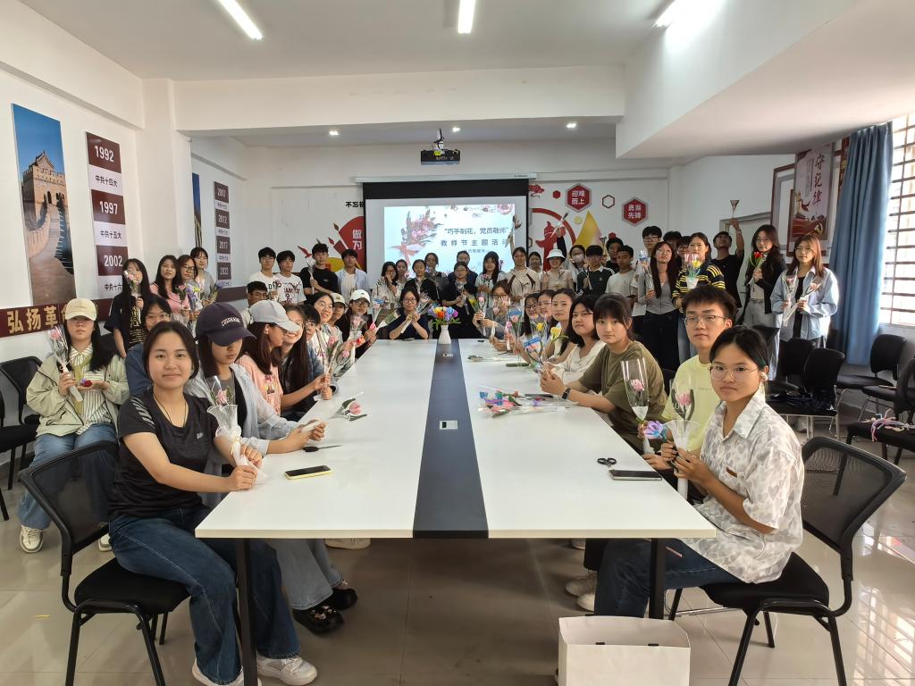 三尺讲台存日月,一支粉笔写春秋。9月10日,在第41个教师节到来之际,为弘扬尊师重教的传统美德,社区中心组织开展了“巧手编花凝党意,丹心赠师寄深情”主题志愿服务活动,活动共计120余名住园学生党员、入党积极分子和社管委同学参加。